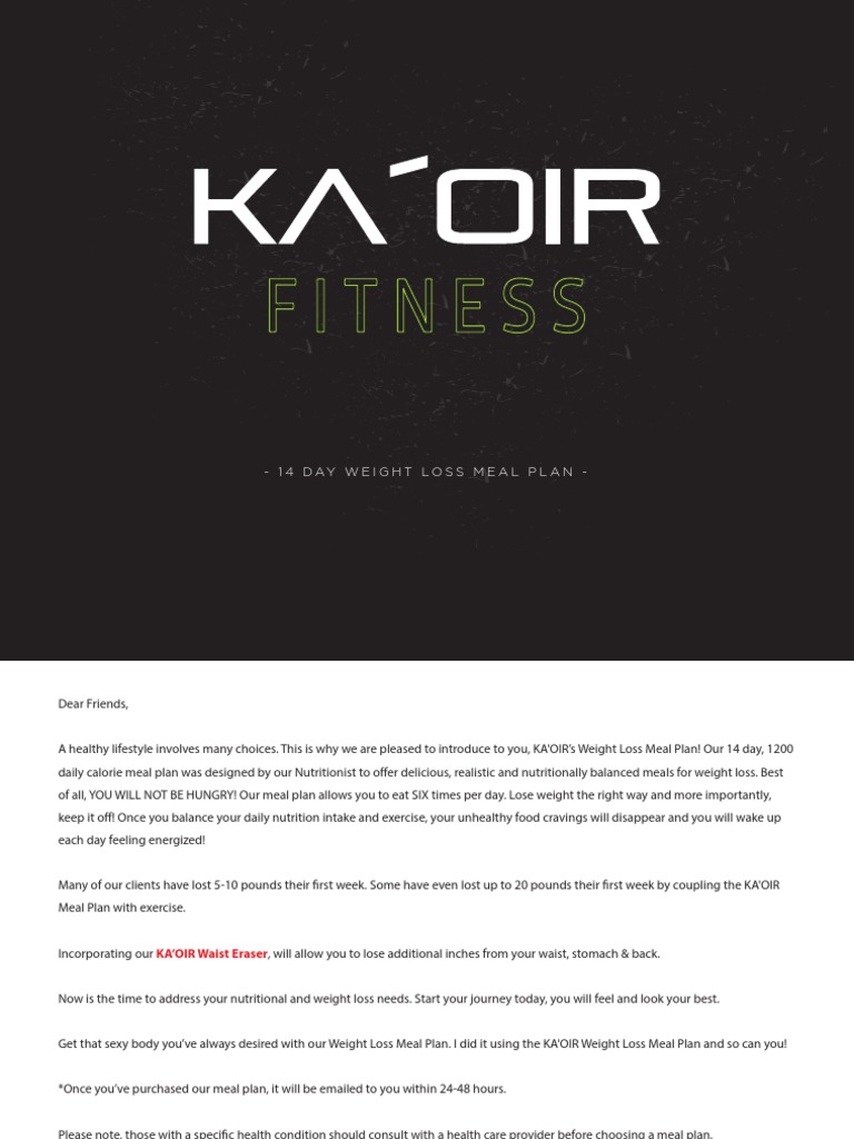 . Web View KAOIR-mealplan-finalpdf from CJ 210 at Southern New Hampshire University. Our 14 day 1200 daily calorie meal plan was designed by our Nutritionist to offer. Product details ASIN.